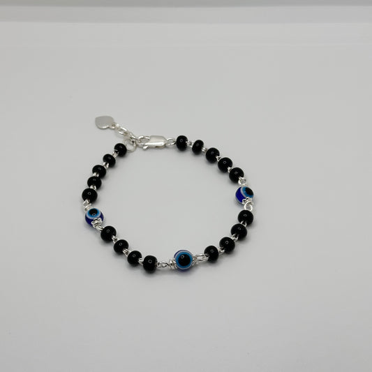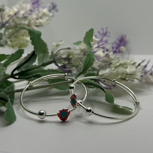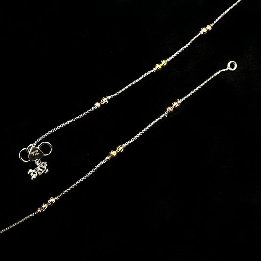 Dual-Tone Beaded Sterling Silver Anklet with Heart and Bell Charms