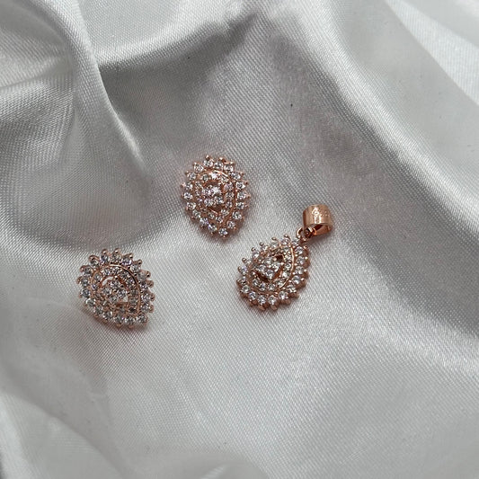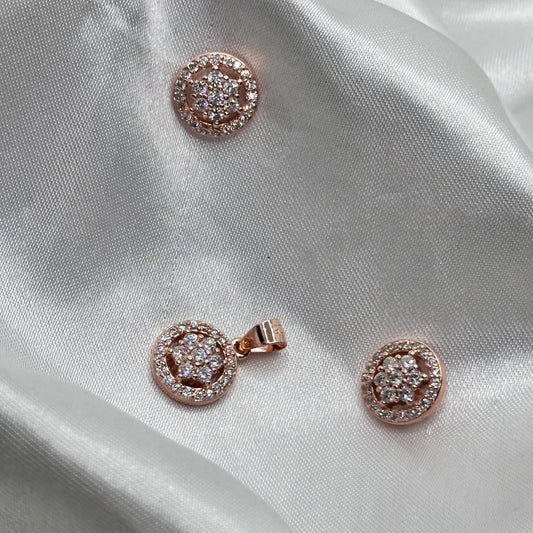 Oval Cluster Halo Rose Gold Pendant Set