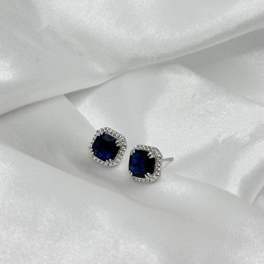 Sapphire Halo Silver Earrings