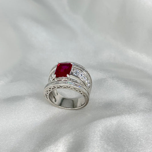 Ruby Emerald-Cut Sterling Silver Ring