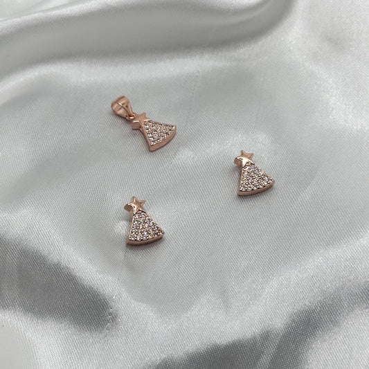 Star-Topped Christmas Tree Rose Gold Pendant Set
