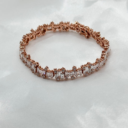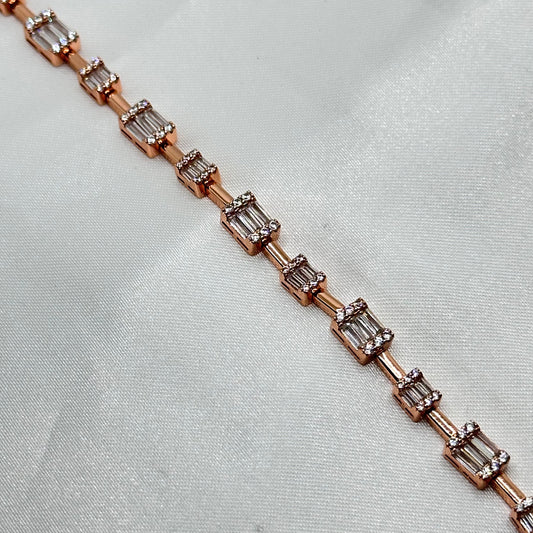 Chic Rose Gold Plated Baguette-Cut Silver Bracelet