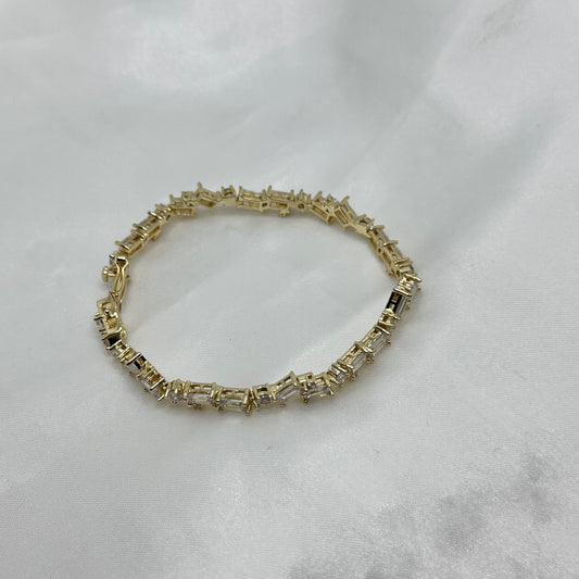 Gold Plated Baguette-Cut Stone Silver Bracelet