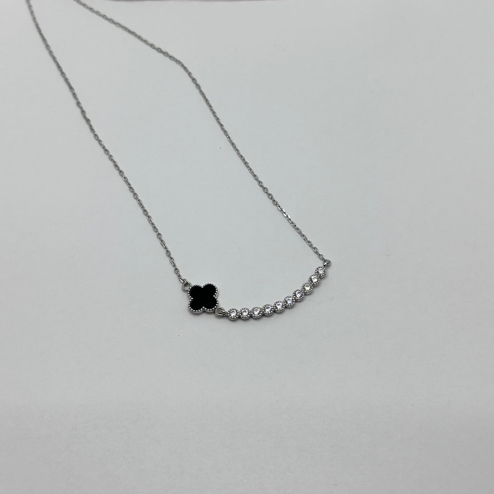 This elegant necklace features a sleek, minimalist design crafted from sterling silver. The centrepiece is a striking black clover charm, adding a touch of sophistication and a hint of mystery. The delicate chain complements the charm perfectly, creating a timeless and versatile piece that can be worn with any outfit.