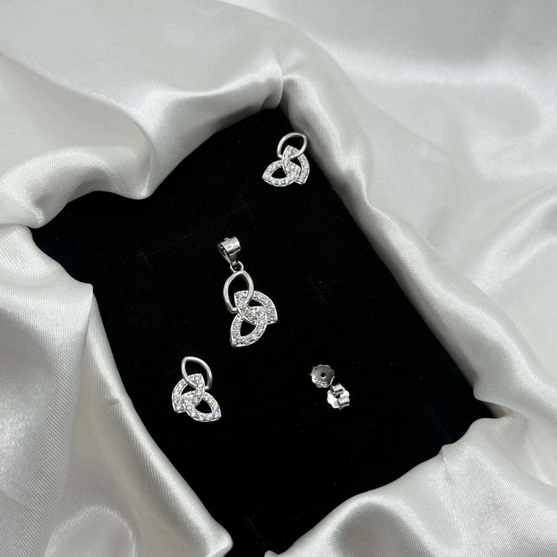 This Gorgeous Triquetra Pendant Set is a must-have accessory for those who appreciate unique and playful jewelry. The intricate and elegant design of the triquetra symbol adds a touch of charm to any outfit. Show off your fun and playful side with this stunning pendant set.